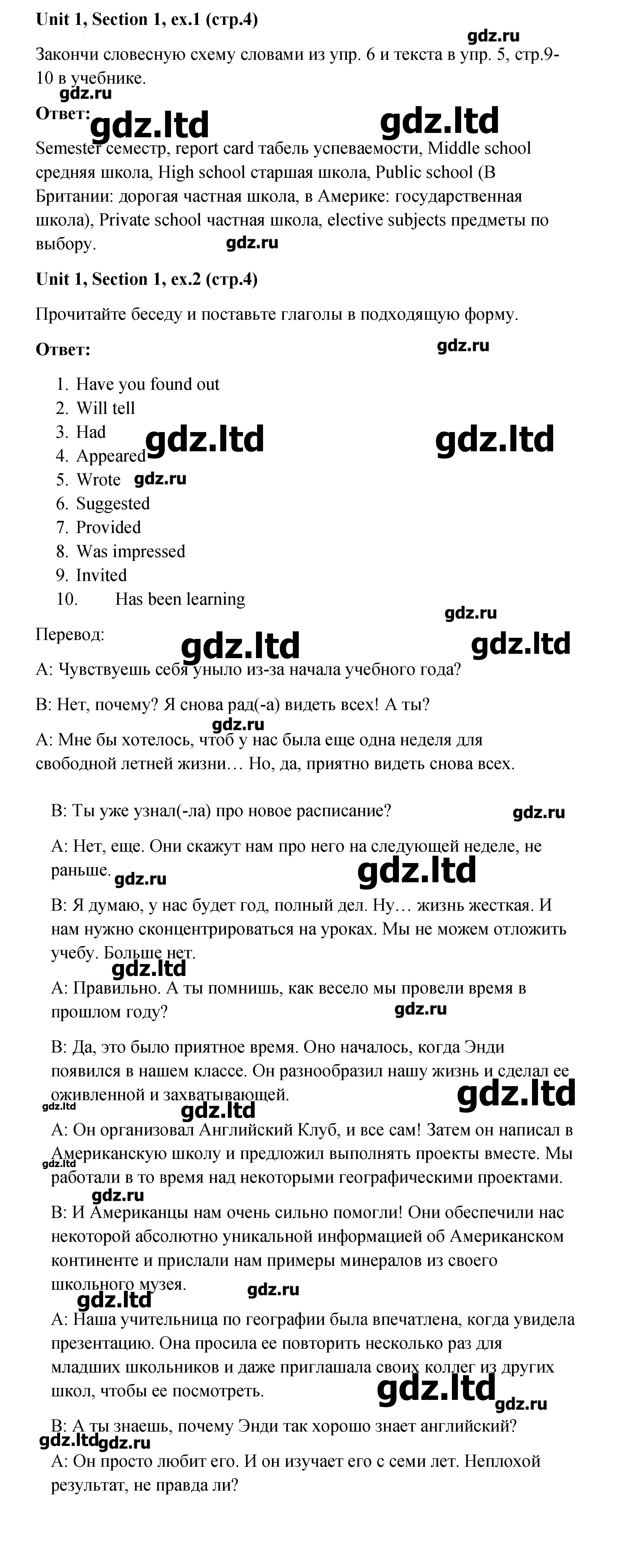 На девяноста пяти страницах приведено подробное изложение по всем упражнениям. В ГДЗ по английскому языку 10 класс материал расположен в виде текстов, таблиц и т. д., что помогает его лучшему усвоению. Удобный русский перевод поможет лучше вникнуть в суть заданий.