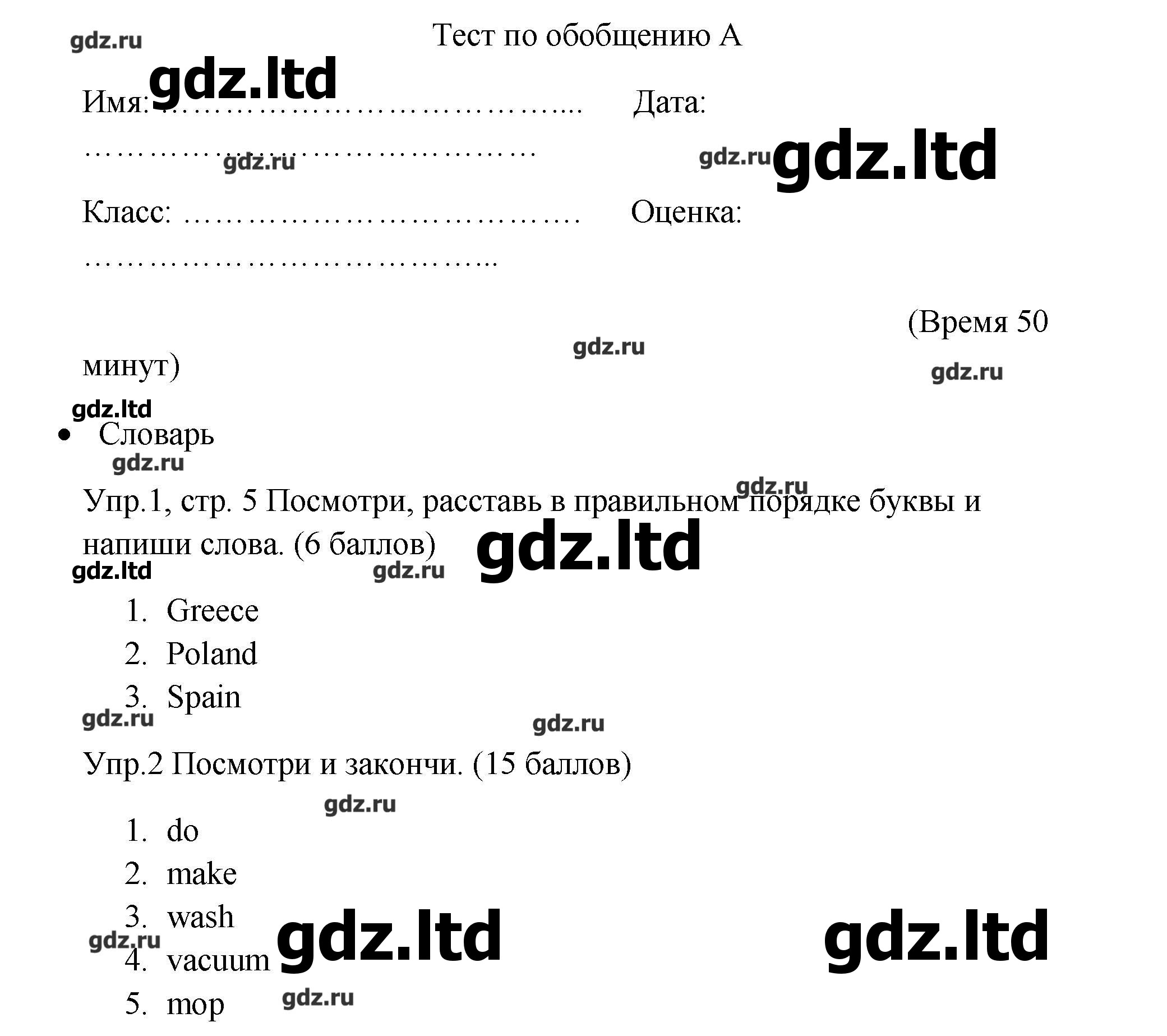 ГДЗ Английский язык 4 класс Баранова, Дули, Копылова, Эванс - Контрольные задания (Углубленный уровень) «Просвещение»