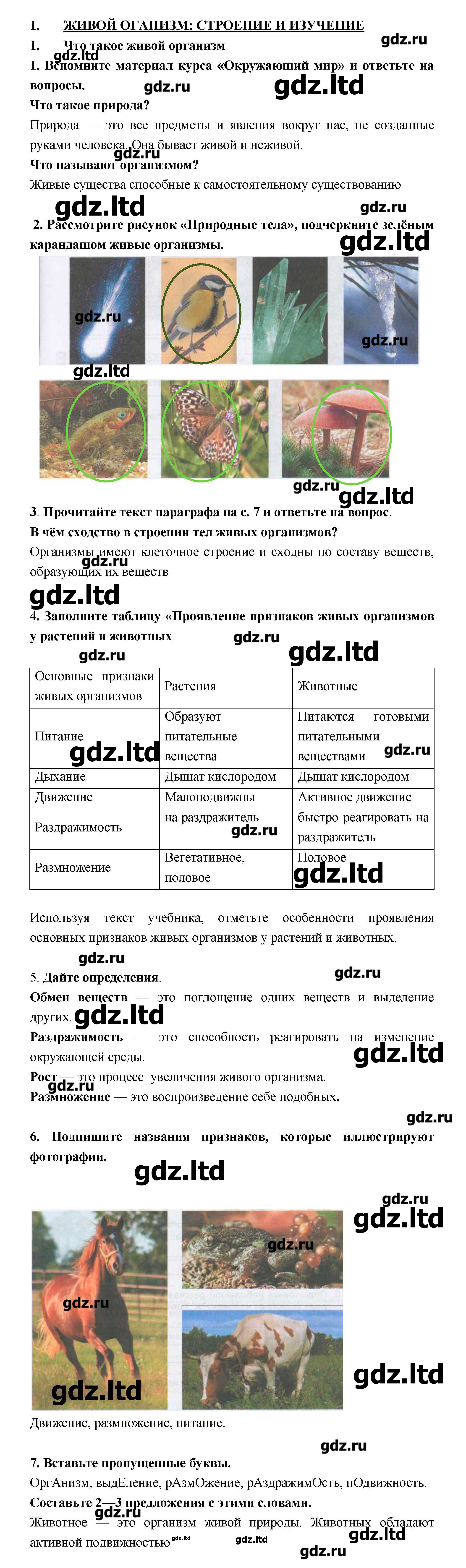 ГДЗ Биология 5 класс Сонин - Рабочая тетрадь «Дрофа»