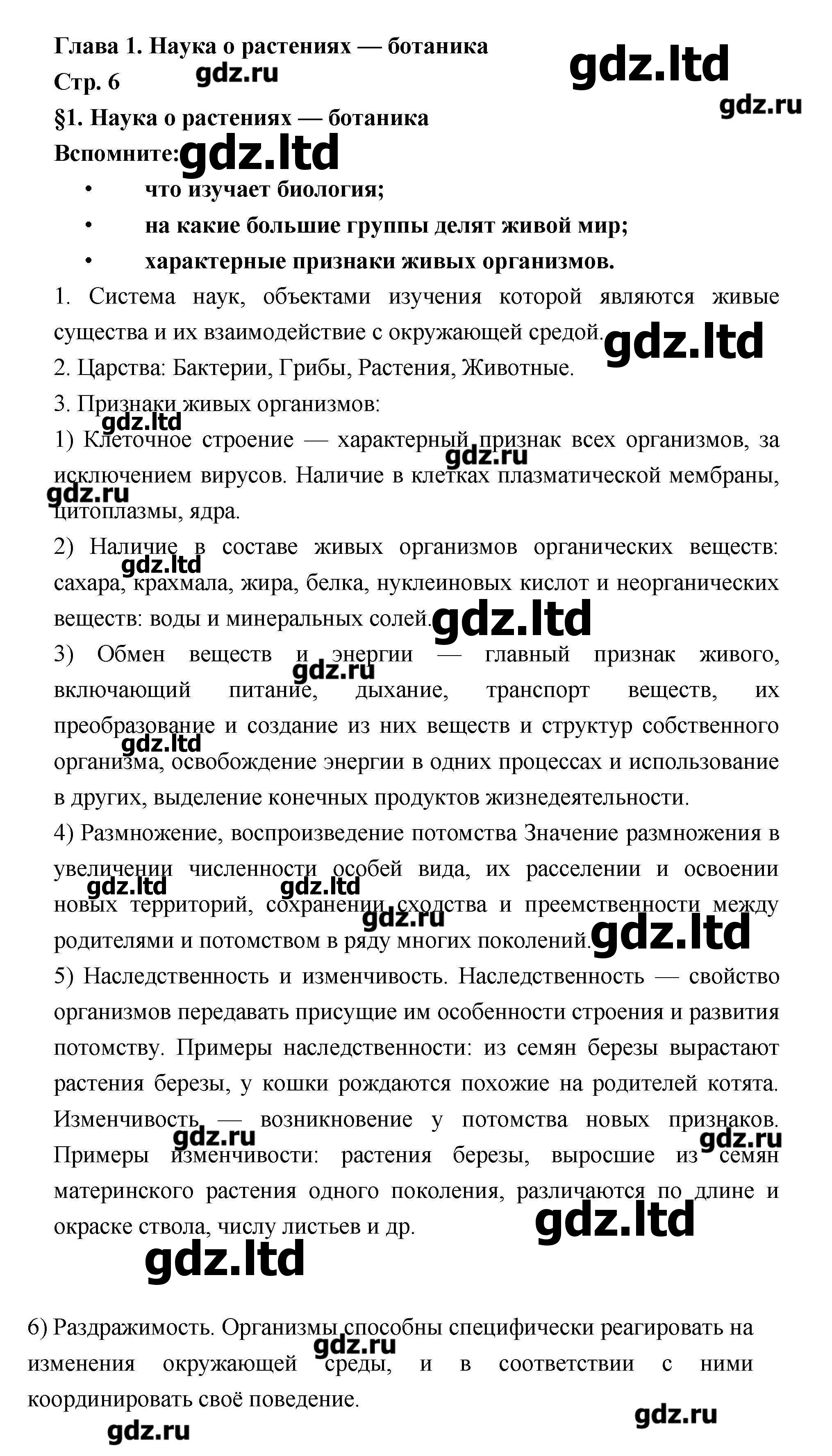 Похожие ГДЗ Биология 6 класс