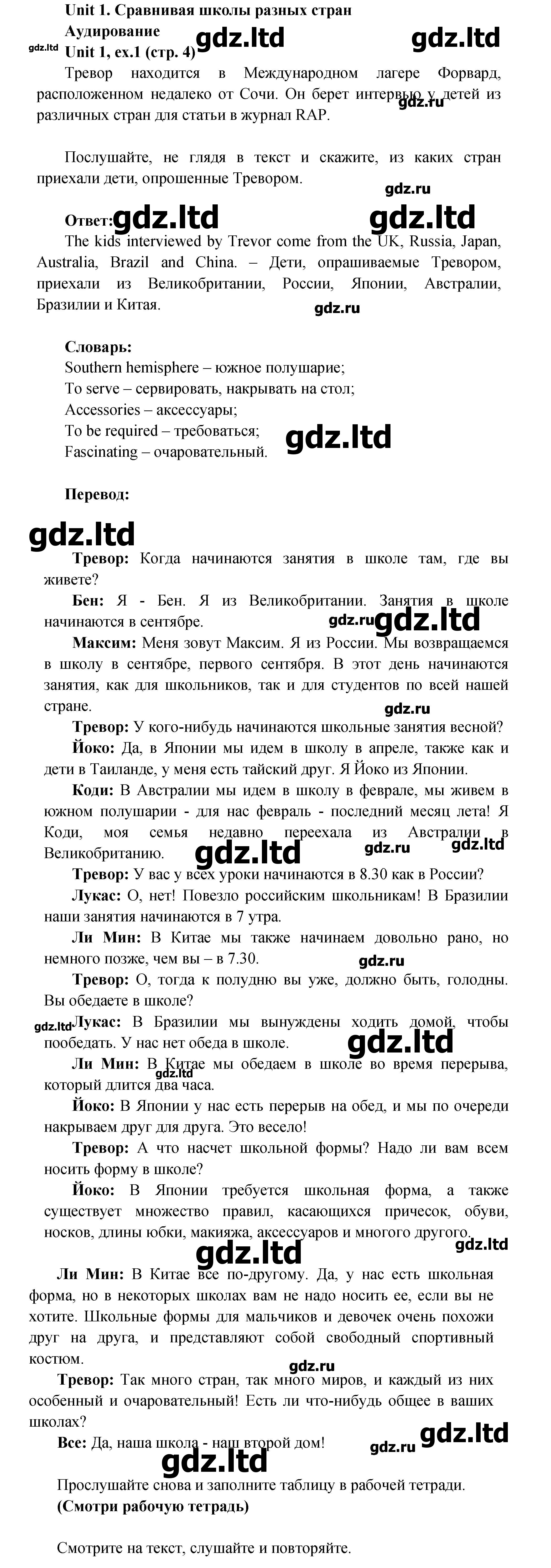 Родителю или школьнику не составит никаких трудностей проверить домашнее задание, т. к. все задания и номера находятся в свободном онлайн-доступе без какой-то подозрительной регистрации и/или СМС. В решебнике представлены все готовые и хорошие переводы текстов, а также подробно расписаны решения заданий.